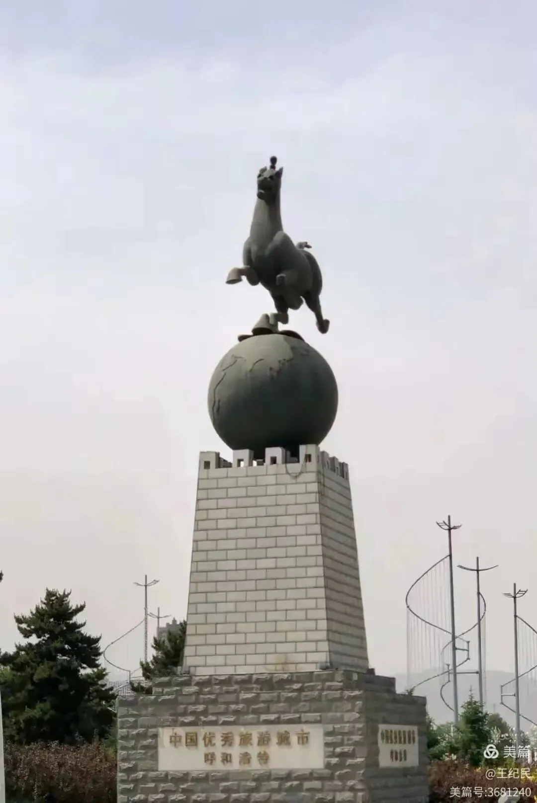 △呼和浩特的城市雕塑,骏马腾跃在地球上,延续了“天马”的意象,象征现代城市的进取精神。