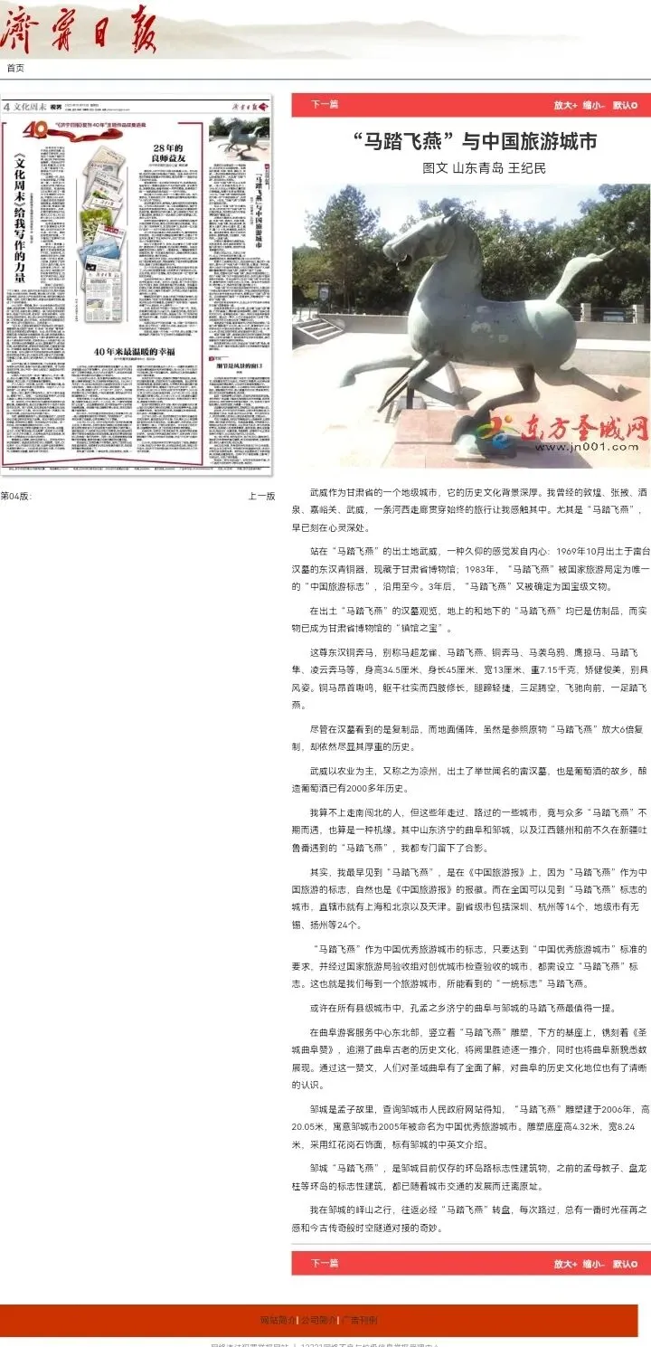 △我发表在《济宁日报》“文化周末”的《“马踏飞燕”与中国旅游城市》。 到护驾山攀峄山峰人生,其实就是一场不消停的苦乐户外活动……