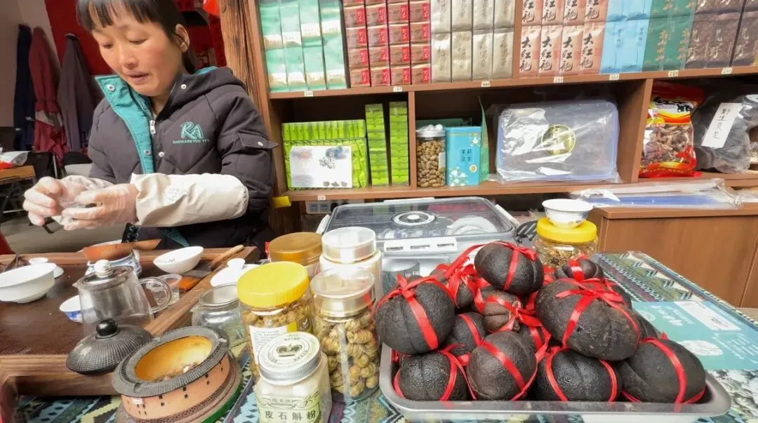 在土楼的院内,各家会卖些土特产,有水果、茶叶、小饰品。小伙的姐姐请我们喝茶,很热情,当然也希望我们能买些。可惜我俩都不喝茶。