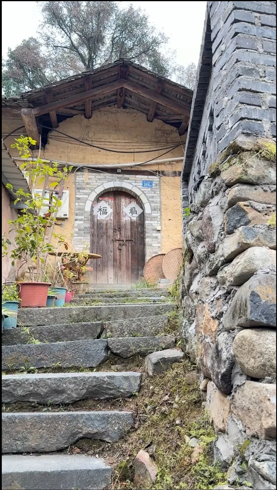 土楼内狭窄逼仄,阴天会很暗。一圈住着22户人家。听小伙说,各家因为是族亲,相处和谐。特别是吃饭时,可以端着碗到各家走走看看,一圈下来,挑点自己喜欢的,就吃饱了。