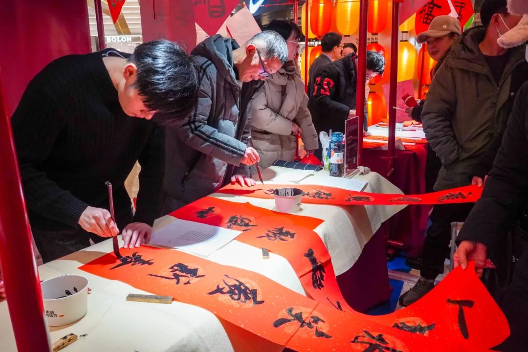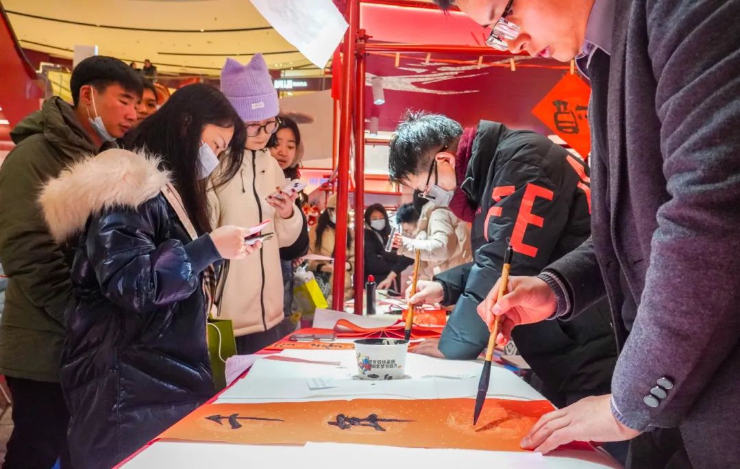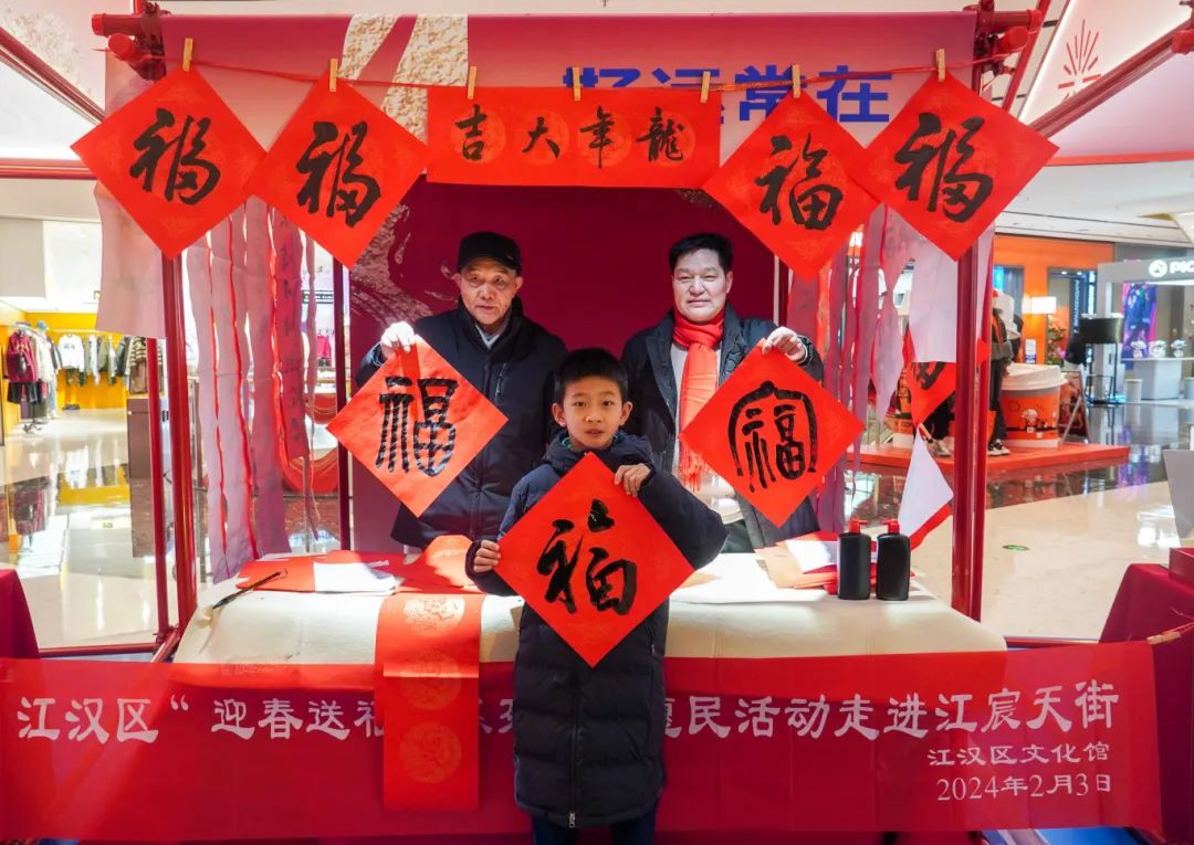 江汉区书法家协会的老师们现场挥毫,浓墨重彩地写下一幅幅“福”字和春联,免费赠送给现场的市民,为大家送上节日美好的祝愿和热情的祝福。