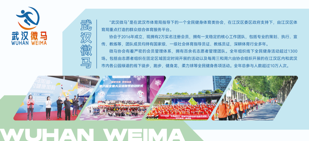 “武汉微马”是在武汉市体育局指导下的一个全民健身体育类协会,在江汉区委区政府支持下,由江汉区体育局重点打造的群众综合体育服务平台。