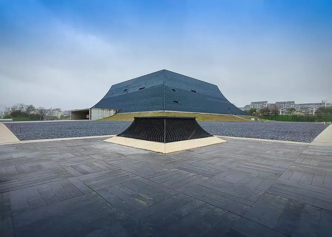 隋炀帝墓遗址公园主体建筑分为帝陵遗址和博物馆,帝陵遗址外观借鉴隋唐时期帝陵的“覆斗”型制,并与传统建筑庑殿顶形式相结合,被专家誉为“落地的皇冠”;博物馆馆内综合运用图文、实物、模型场景、声光电、多媒体互动等手段,系统展示了隋代历史和隋炀帝墓考古发掘成果。