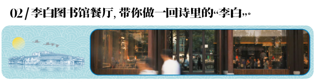 午餐推荐:大庆楼、天云楼、老顺兴、长兴馆、丁莲芳等传统老店,李白图书馆餐厅、捌号西餐、顾家阿公阿婆等网红打卡点;江南庭园、巨人君澜、博阳开元名庭、千翁宾馆等饭店。