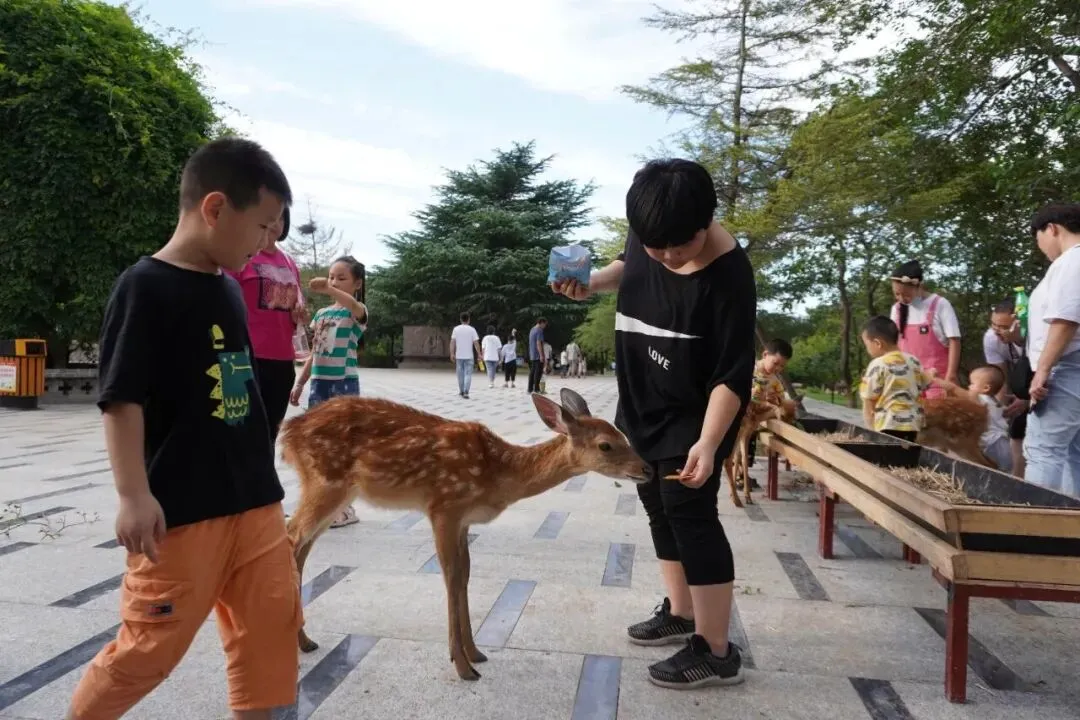 买份鹿食递到小鹿嘴边,看它们小心翼翼凑近、轻嗅、咀嚼,疲惫瞬间消散。
