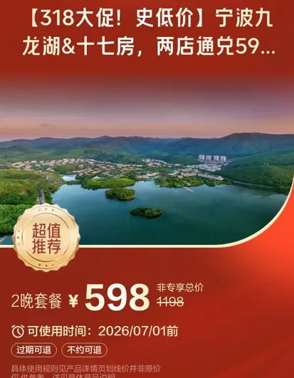 最后,春促上新!299一晚的九龙湖度假村,周末不加价!上海,浙江北部度假爆款,春游速拿下!有效期到7月1日。