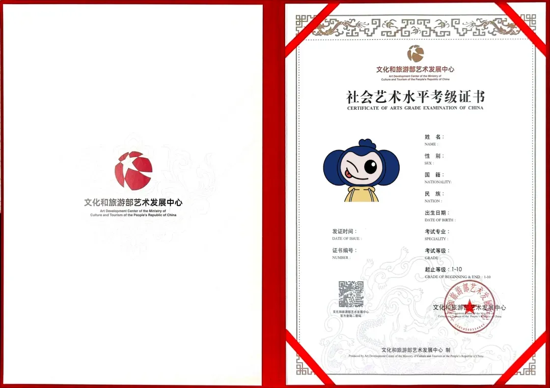 此证书是中华人民共和国文化和旅游部直属事业单位——文化和旅游部艺术发展中心颁发,统一编号,可通过官网查询证书编号和考生信息。