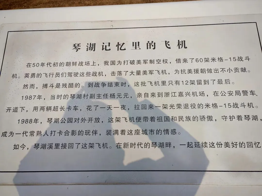 回首往昔,琴湖公园这架退役飞机,在常熟城太有名了,是我们这一代人珍贵的记忆,它是老琴湖公园的一个景点。另外,这架飞机的身份可不简单,它是米格-15,曾经在抗美援朝战争中立了大功,是光荣引退的飞机。退休后发挥余热,来增亮我们的琴湖。