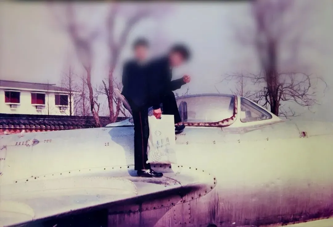 大约同时期,我与单位两位要好的同事到琴湖玩,也为他俩拍摄了飞机照片。他俩居然爬到了机翼上。