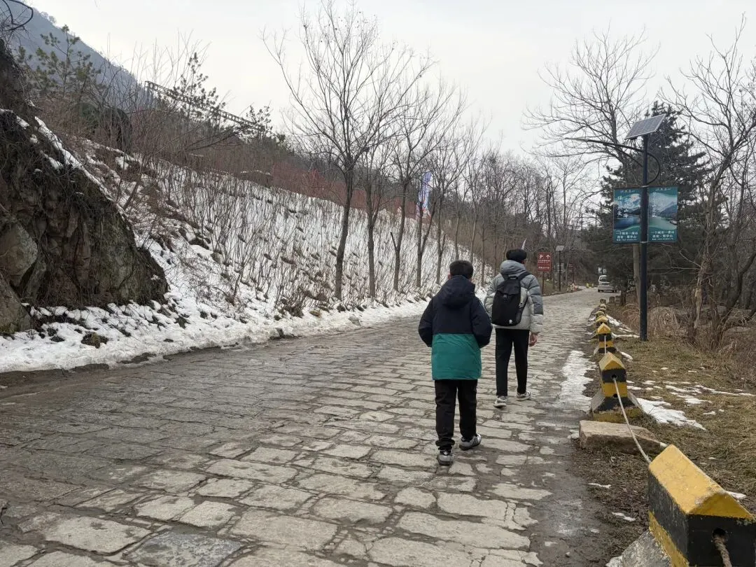 睡到自然醒的“佛系小队”,终于慢悠悠晃到了目的地(接近下午1点)。一路上是冬日特有的清寂与萧瑟,没想到转过弯竟藏着另一片天地——真叫“山重水复疑无路,柳暗花明又一村”。