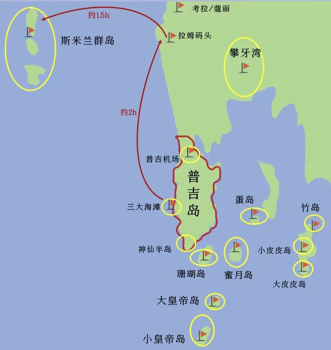 普吉岛(Phuket),位于印度洋安达曼海东南部,被誉为 “安达曼海上的明珠”,是泰国境内唯一受封为省级地位的岛屿,也是泰国第一大岛,最受欢迎的旅行度假地。 签证、前往航线以及最佳旅行时间 签证要求:目前泰国对我国公民入境泰国30日之内免签。 前往航线:目前我国北京、上海、广州和深圳等地均有直飞普吉岛的航线。 最佳旅行时间: 普吉岛全年分为旱季(11月 - 次年4月)和雨季(5月 - 10月),其中旱季是普吉岛的旅游旺季,气候宜人,阳光充足,气温相对凉爽,降雨较少,海水清澈,天空湛蓝,非常适合进行浮潜、潜水、冲浪等水上活动,以及在沙滩上享受阳光浴和进行各种户外探索,比如去皇帝岛、斯米兰群岛游玩等。 酒店分布与介绍