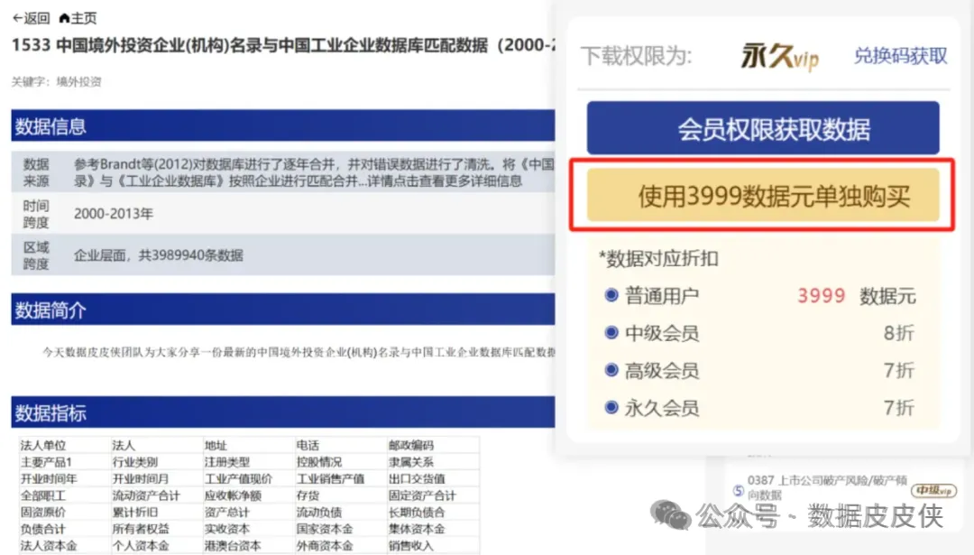 2.非高级会员或永久会员搜索对应编号后在网页右上角通过数据元单独购买