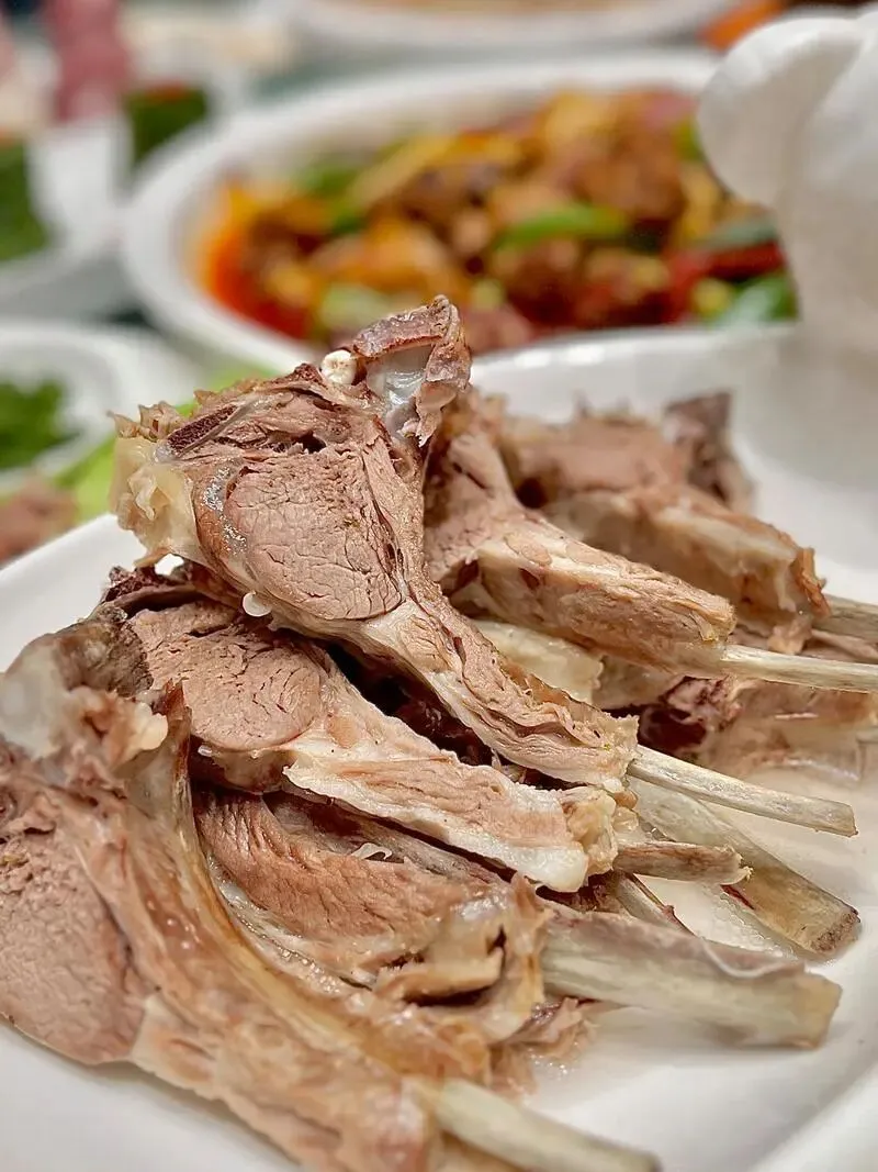 手抓羊肉要切厚一点,热气一冒,蘸盐就够。