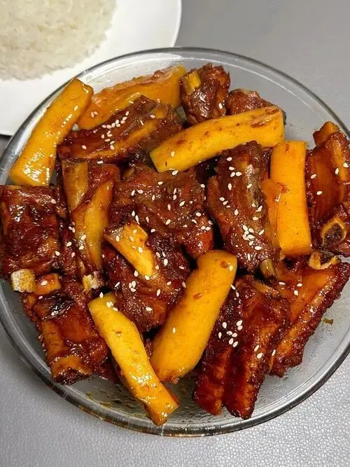排骨年糕外脆里糯,记得趁热。