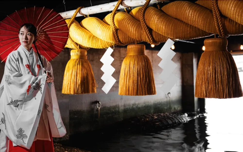 黄金大注连绳。以海洋与龙神意象构成的独特氛围,为来访者带来静心沉淀与焕然一新的时刻。