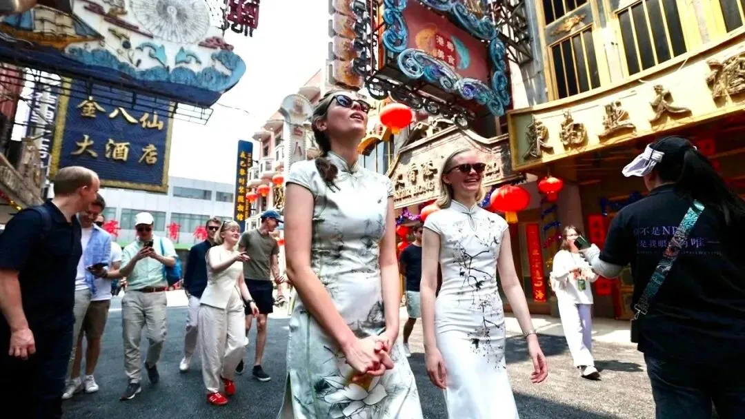 上海影视乐园专为国际友人设计了海派影视文化主题游览线路。这条线路以沉浸式换装开启,不仅可打卡《功夫》《繁花》的取景地——30年代南京路、90年代黄河路等经典影视地标,还能体验《新世界》沉浸式戏剧,在特色电影场景中品尝风味餐饮、观看特技团队带来的武打表演。