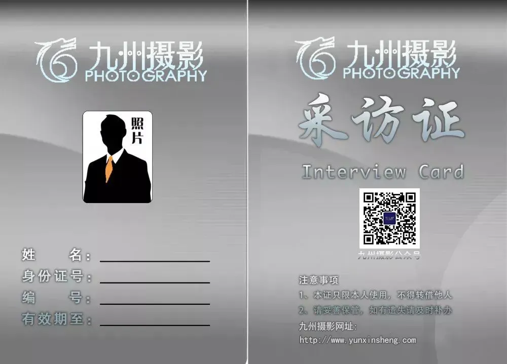2、九州摄影网采访证(手册式一本,挂牌一份)
