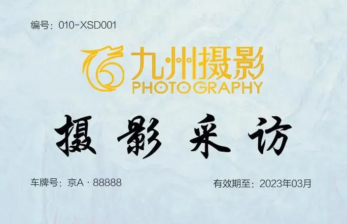 1、颁发《九州摄影采访证》、车贴、停车证;