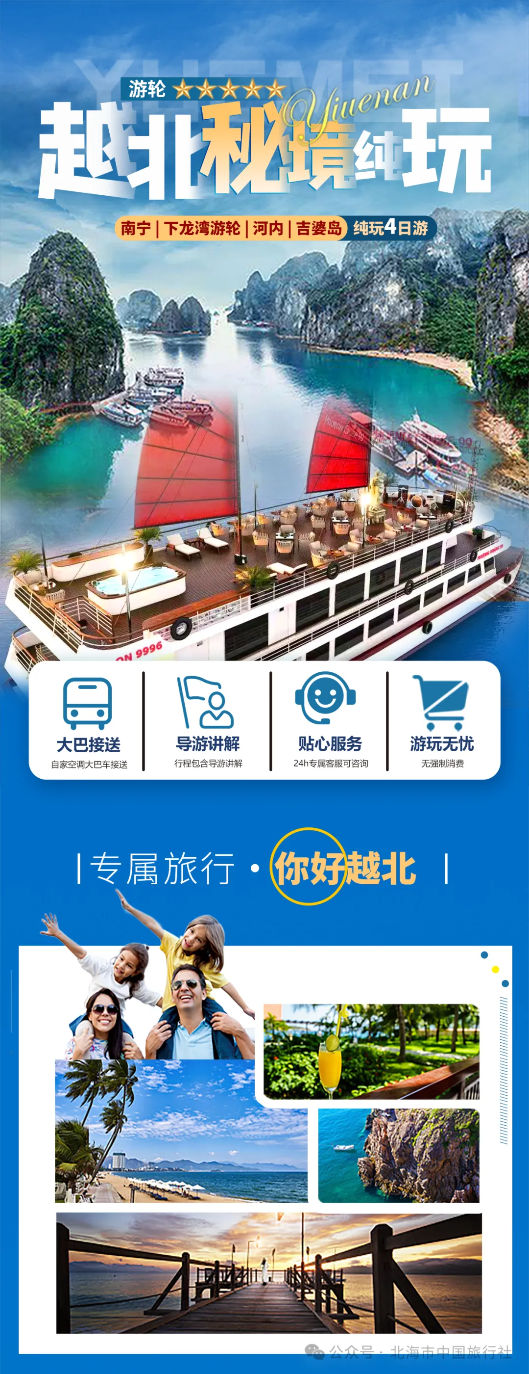 越南旅游 越北(游轮)秘境纯玩游 南宁、越南下龙湾游轮、河内、吉婆岛纯玩四天三晚游 2月16-23日(除夕-初七天天发团) 1180元/人