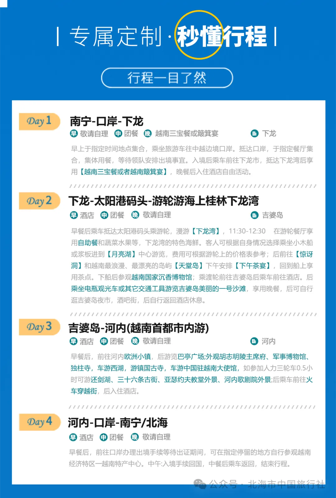 南宁/北海起止,已含280元签证费和过关小费,铁定发团