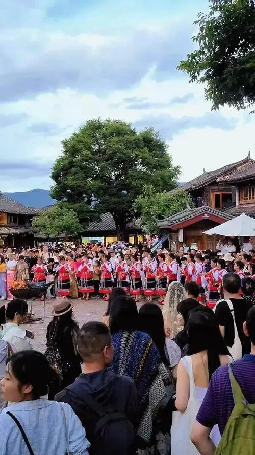 主广场全天舞蹈打卡,商业化最集中,酒吧驻唱循环,客栈拉客不停,走几步一个银饰铺,拍出来照片像复制粘贴。