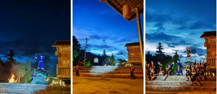 晚上可自费观赏瑶族同胞精心准备的【瑶族民俗表演】(费用自理50元/人、自由自费),欣赏一场独具浓郁瑶族特色的民俗文化表演,“上刀山”“下火海”“踩犁头”等瑶族绝技深深攫住紧张的心情,当师傅们每一脚踩在锋利的白刃上,每一脚趟过火花四溅的火海,每一脚踏过通红的犁头,都引来一阵阵惊呼!当师傅们给观众展示他们完好无损的脚掌时,又引来一阵阵喝彩。这犹如夏日的一阵疾风骤雨后,蓝天和白云归于平静,也把一个极其奇妙的“世界”展现在人们眼前。结束后入住酒店。