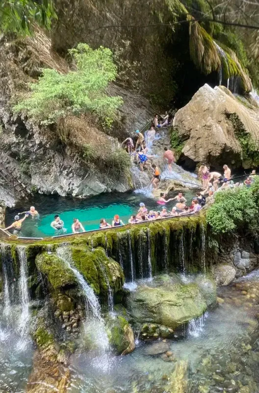 说到温泉,大家脑子里是不是都是那种安安静静泡在池子里的画面 大凉山的螺髻九十九里温泉瀑布,完全颠覆了这个认知 40度的温泉水从几十米高的悬崖上倾泻而下,形成一层层天然的温泉池 站在瀑布下面,热水拍打在肩膀上,那种冲击感和按摩感,比任何人工设备都来得过瘾 这是全世界最大的温泉瀑布,不是之一,是唯一 景区里有数十个大小不一的温泉瀑布,泉水含氡元素,据说能养生养颜,关键是可以观、可以泡、还可以喝 我去的那天下午,阳光洒在水面上,波光粼粼的,像撒了一层碎金 最神奇的是,这里一年有两百多天都能看到彩虹,就悬在温泉瀑布上方,伸手好像就能摸到[] 挂壁温泉建在山崖边,躺在池子里就能吹到山风,那种感觉,用"人间值得"来形容都不过分 从西昌坐车过去也就四十多公里,门票含观光车大概一百多块,性价比高得离谱