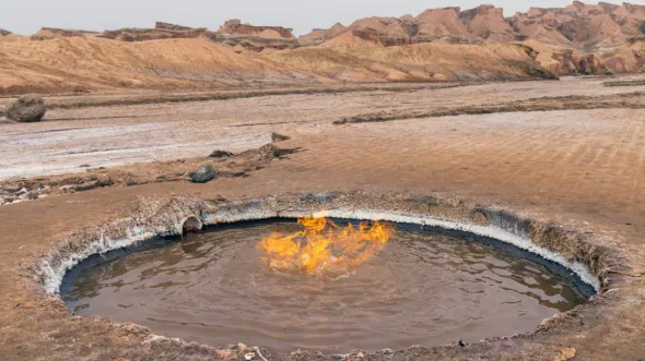 第一次听说烈焰泉的时候,我以为是哪个景区搞的噱头 真去了新疆拜城才知道,这是货真价实的自然奇观 往泉水里扔一个火星,泉眼瞬间就能燃起火焰,而且火不会把水浇灭,水也不会把火熄灭,就这么一直燃着 这里有一干一湿两眼烈焰泉,不知道燃烧了多少年,没人能说清楚[] 原理其实是地下丰富的天然气通过裂隙涌上来,跟泉水融合在一起,遇到火种就喷出火焰 拜城县位于塔里木盆地南缘,是西气东输的主力气源地,油气资源特别丰富,才造就了这个奇景[] 烈焰泉就在克孜尔魔鬼城旁边,火焰随着地下气体流动不断变化,有时候高高窜起,有时候又低回婉转 夜晚去看更震撼,火光映照下的泉水,真有种地狱之火的感觉,但又不会让人害怕,反而觉得大自然太神奇了[] 这种水火交融的景象,全世界只有这一处,想看必须来新疆