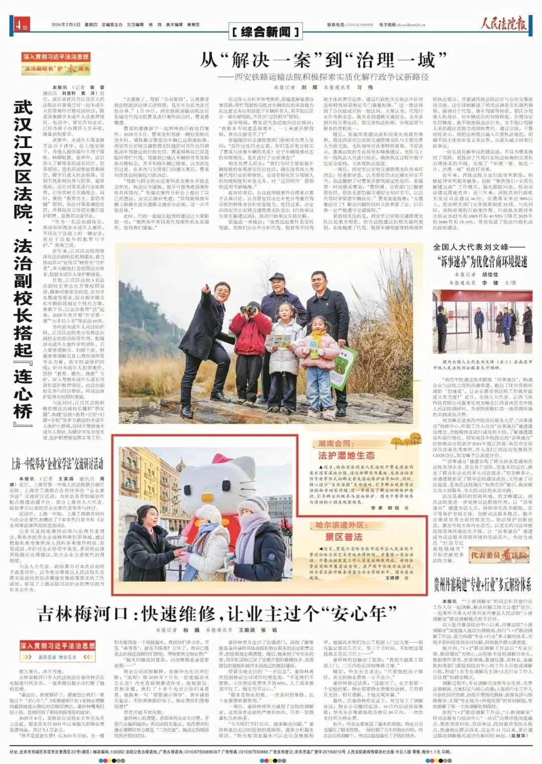 近日,黑龙江省哈尔滨市道外区人民法院干警前往哈尔滨艺术宫版画博物馆,开展暖心普法活动。干警向游客及工作人员发放御寒用品,并结合景区实际开展普法宣传,在严寒中传递司法温情,助力景区提升服务质量与安全管理水平。