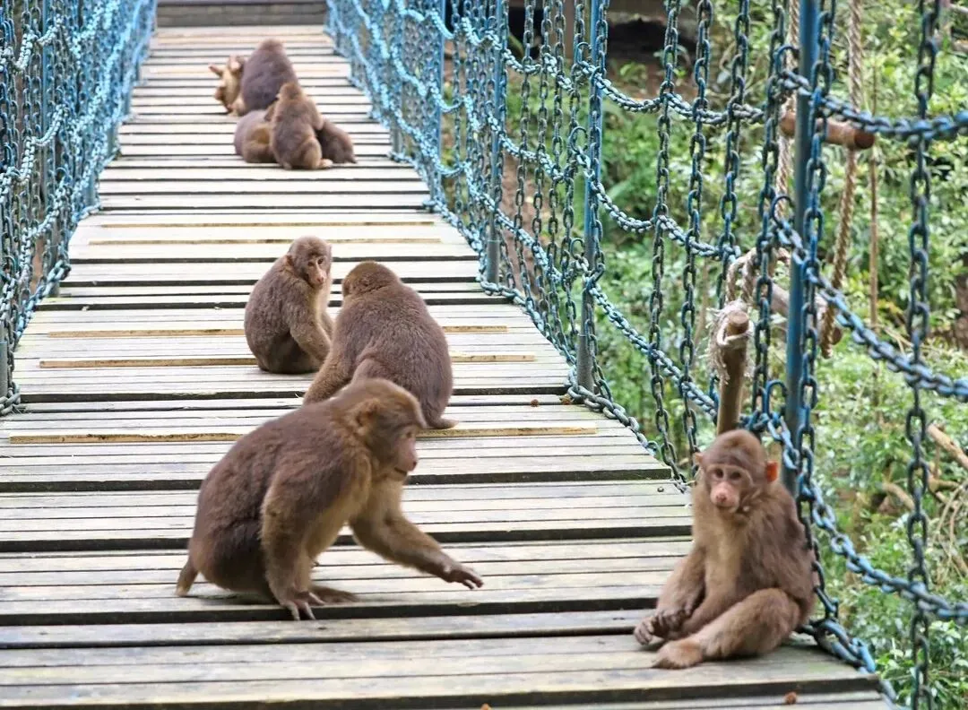 与野生猕猴互动趣味性强,自然野趣突出。
