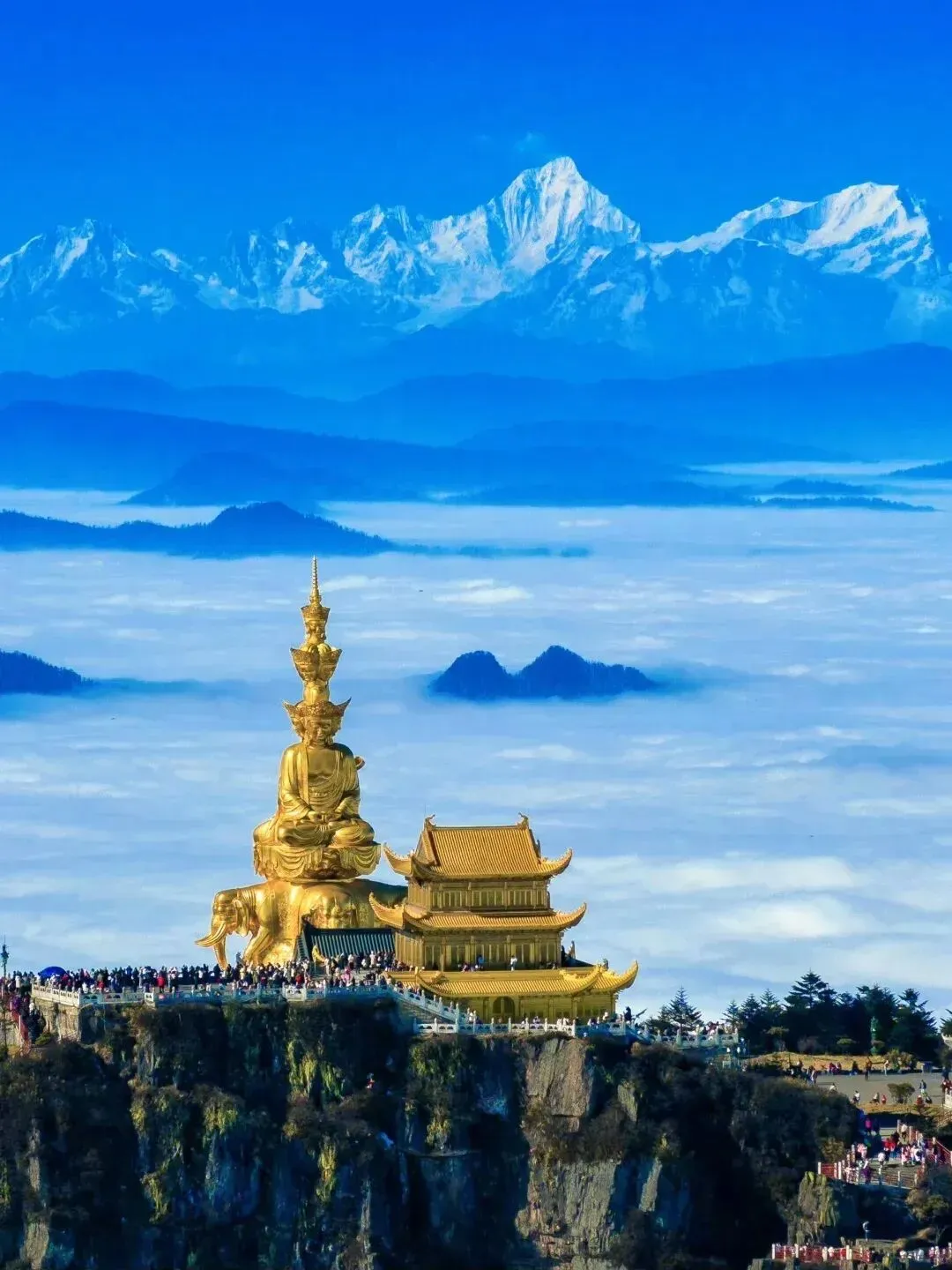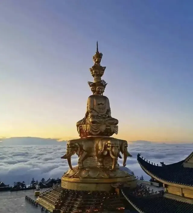 峨眉山最高点,可俯瞰云海、日出、佛光三大奇观,十方普贤圣像气势恢宏,佛教文化氛围浓厚。
