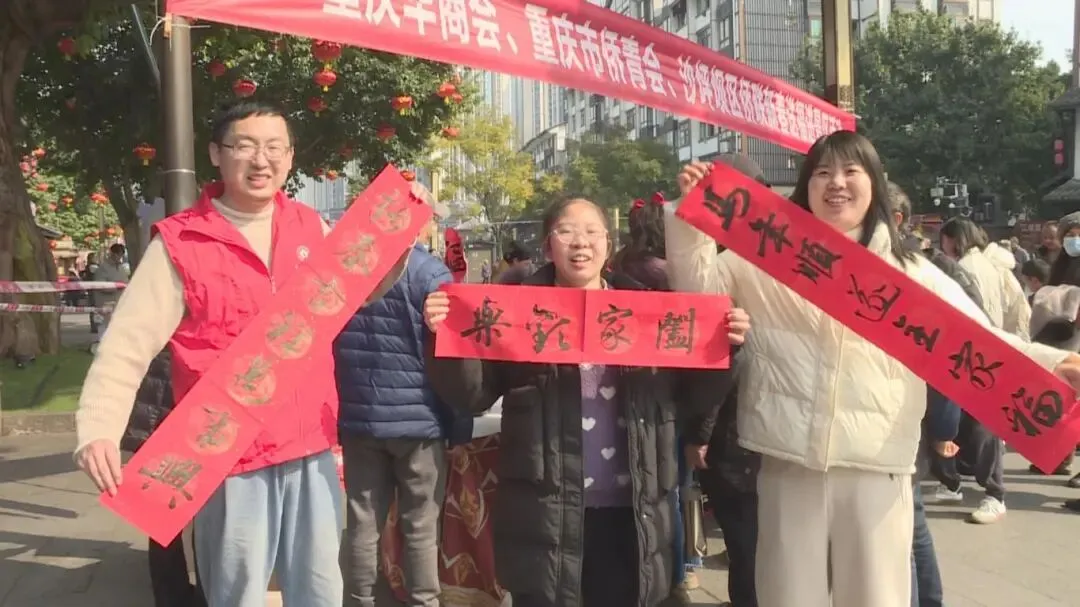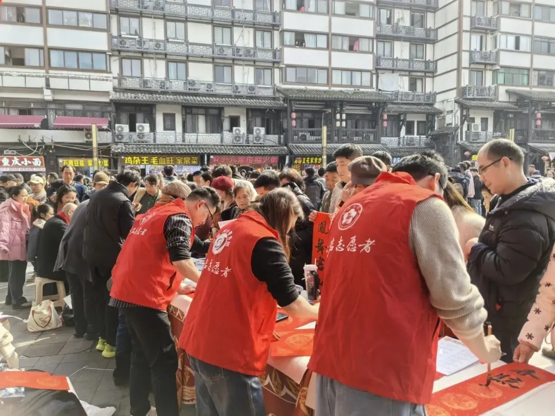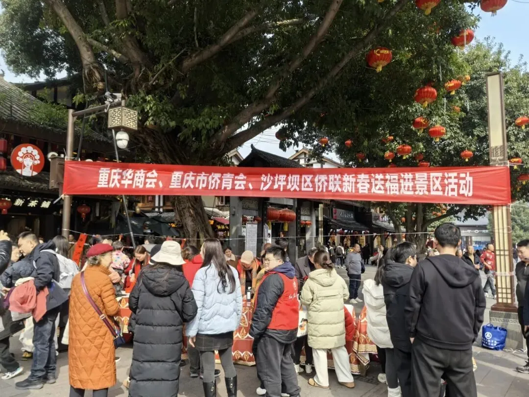 在甲午马年新春即将来临之际,为弘扬中华优秀传统文化,营造喜庆祥和的节日氛围,2026年2月4日下午,由沙坪坝区侨联联合重庆华商会、重庆市侨青会主办的“翰墨迎新春 送福进景区”活动,在中国华侨国际文化交流基地——磁器口古镇黄桷坪牌坊举行。此次活动也是沙磁同心服务团侨联分团在新年伊始开展的首次志愿服务活动。