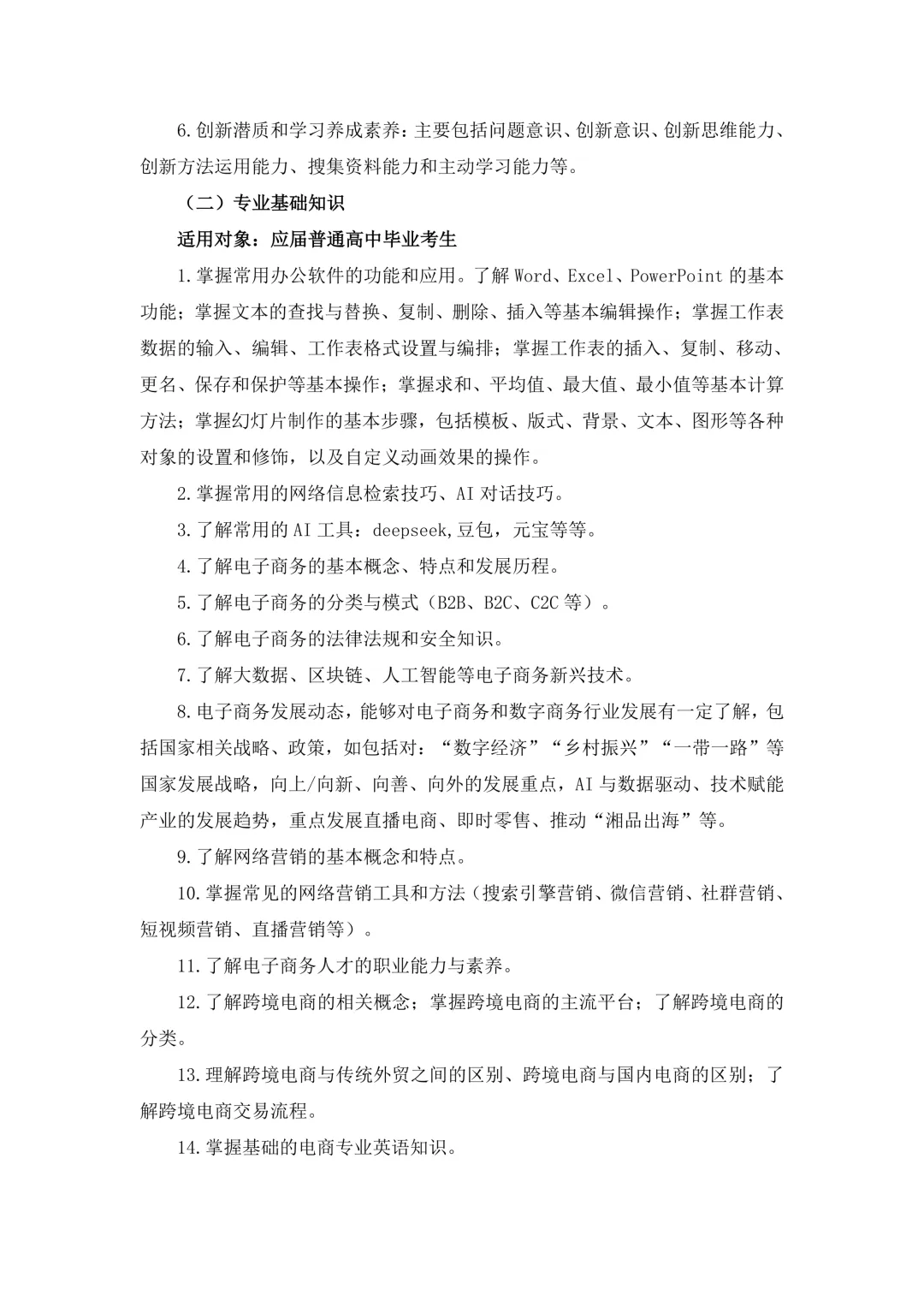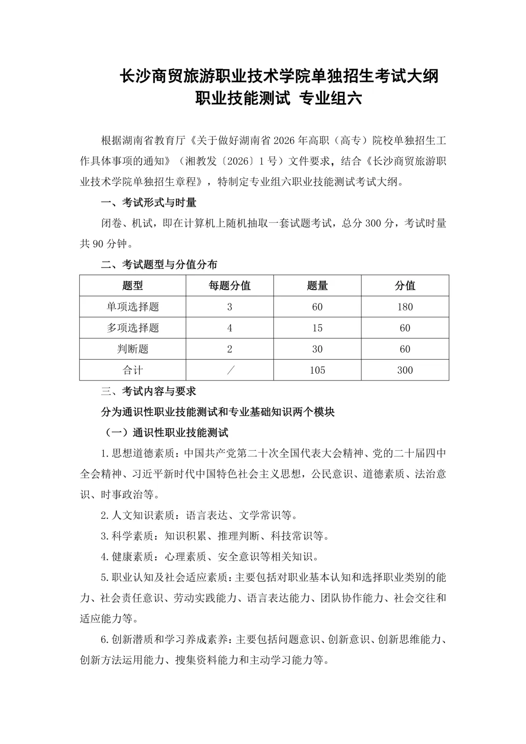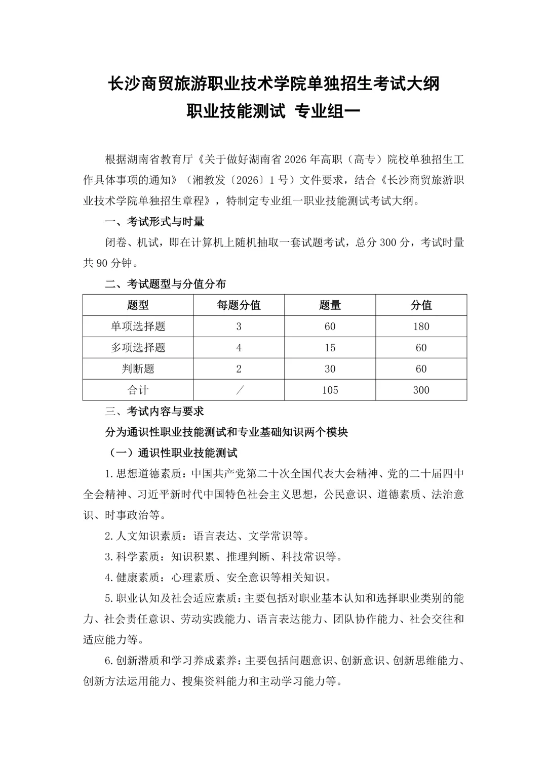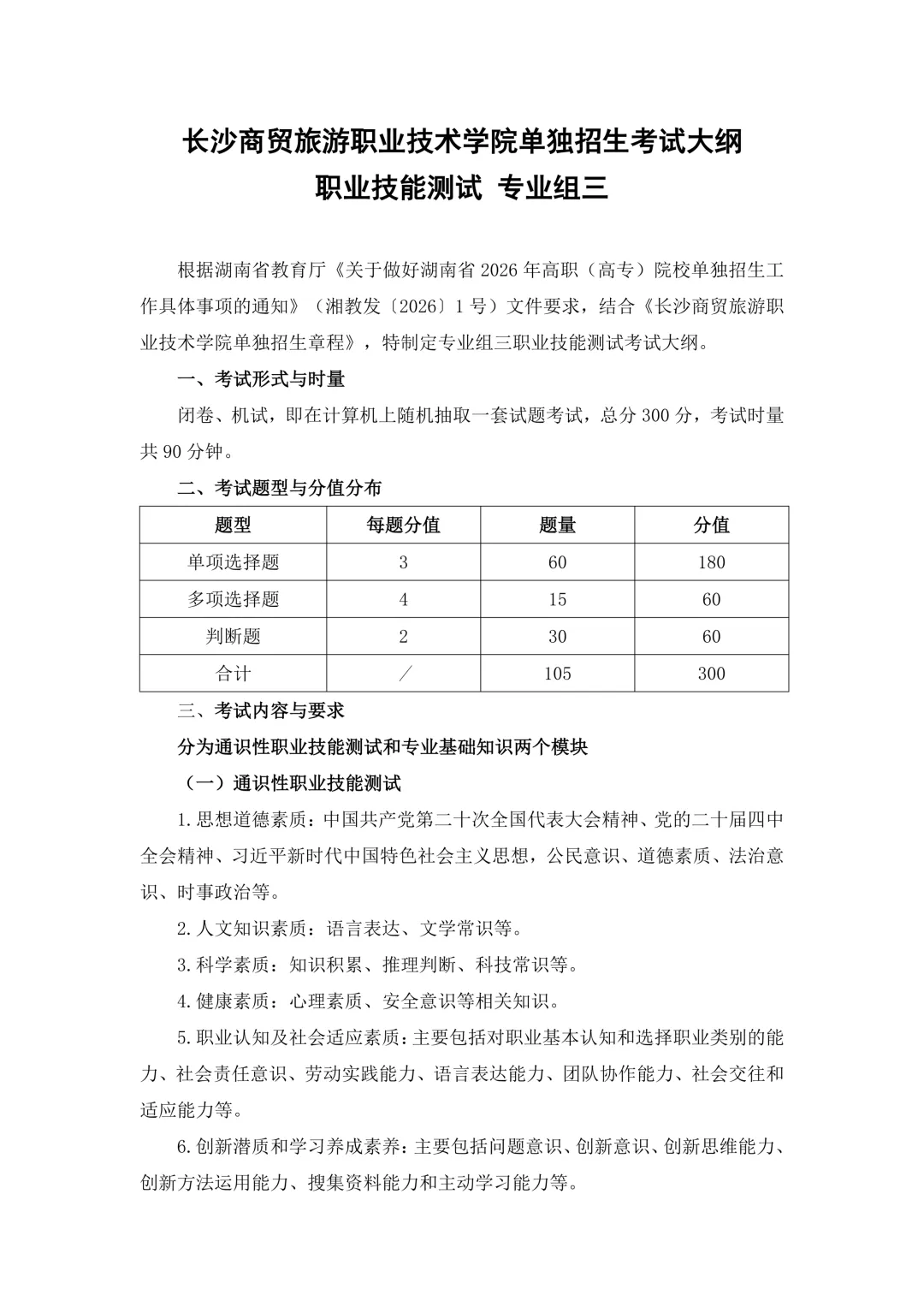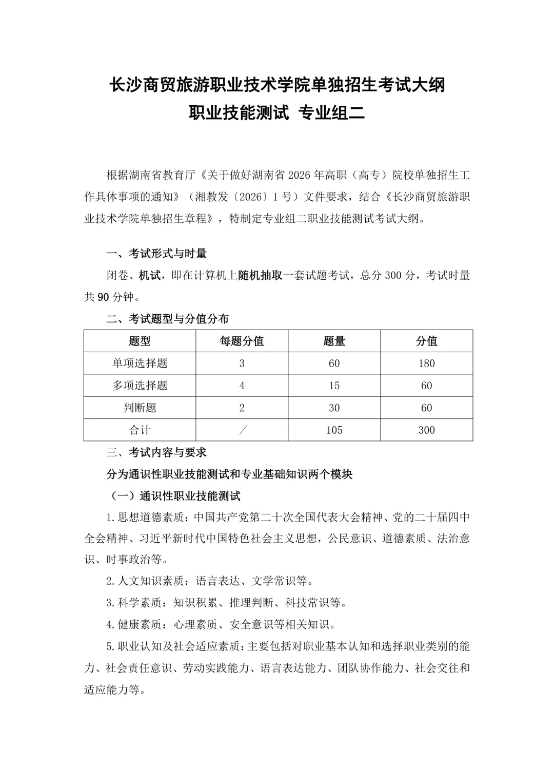 单招季|长沙商贸旅游职业技术学院2026年单招职业技能测试大纲