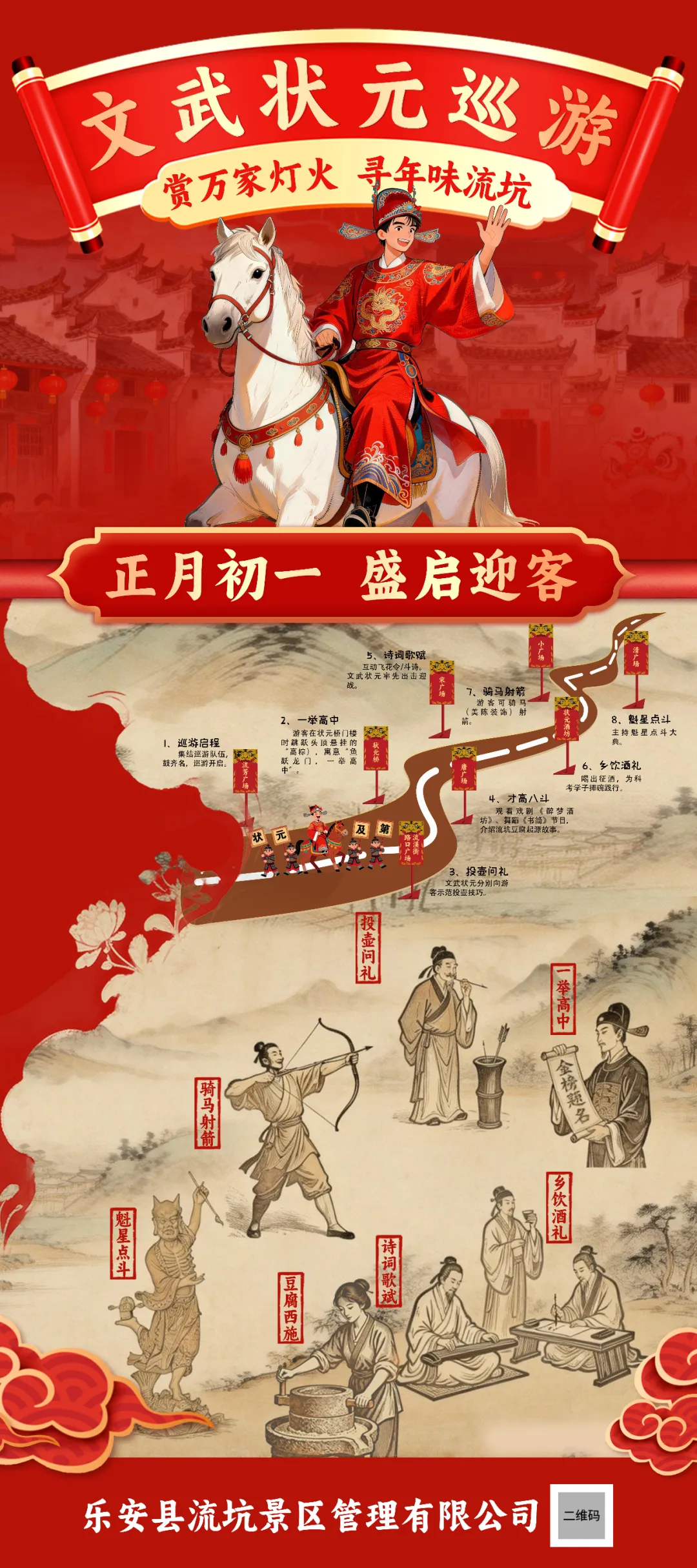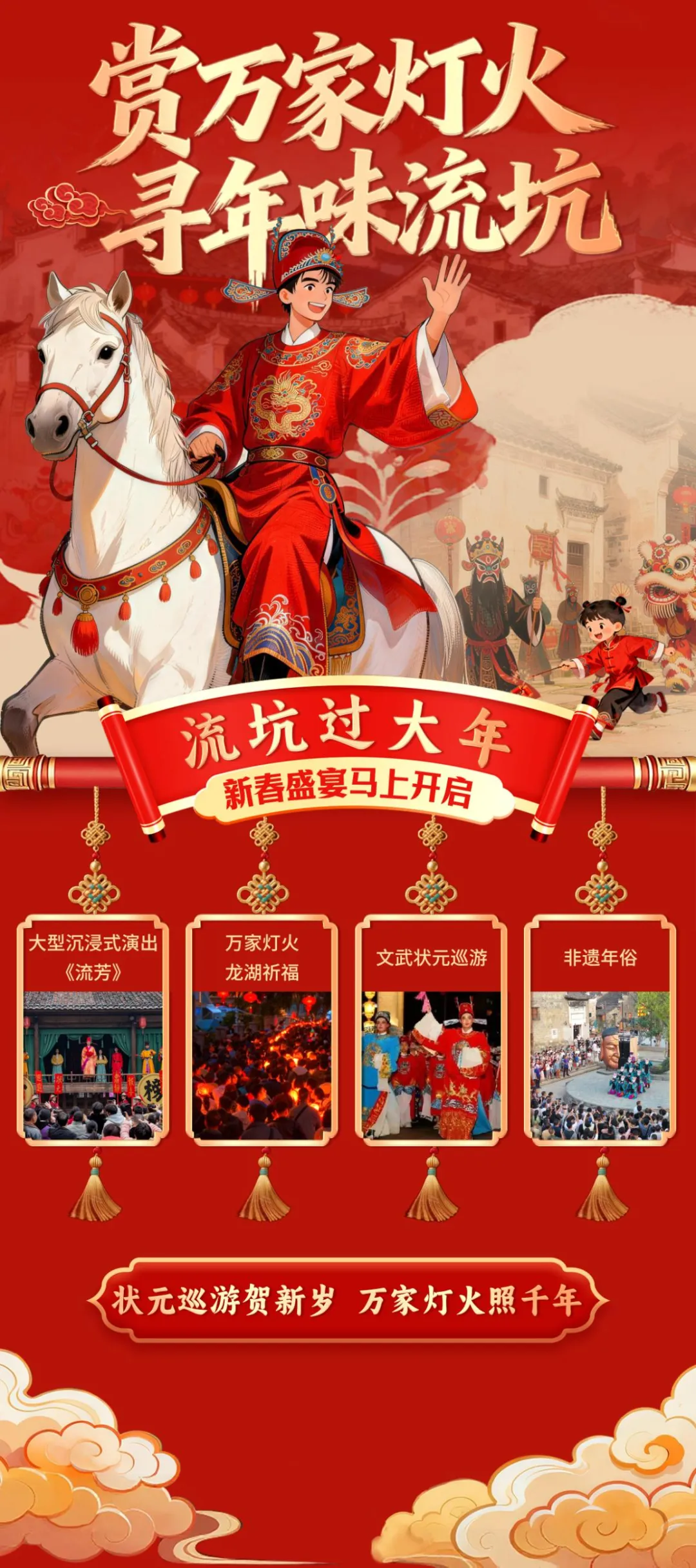 当新春的钟声敲响,当古村的门扉轻启,一场融合礼乐、民俗、光影与诗意的千年之约,在流坑悄然绽放。这里,不仅是历史的回响,更是年味的故乡。这个春节,让我们放下匆忙,走进流坑,在“状元故里”的万家灯火中,找回记忆深处最浓郁、最鲜活的中国年。