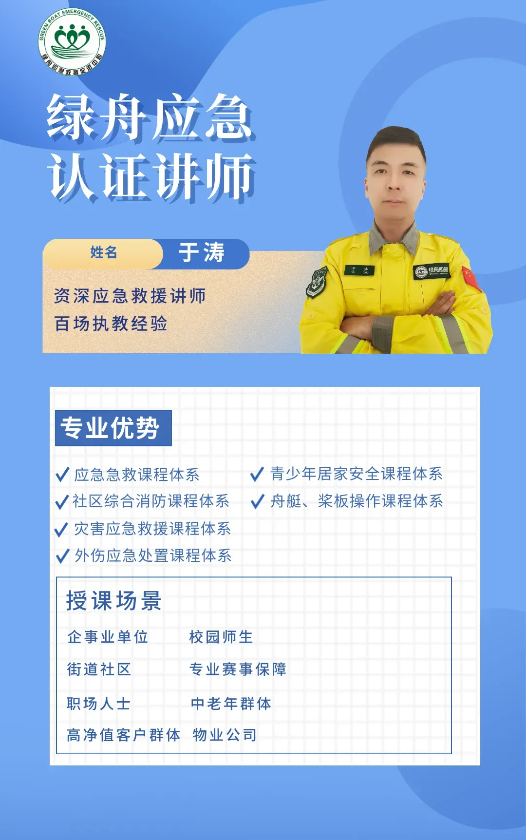 绿舟曾组织参与过海南威马逊台风、尼泊尔地震救援、鲁甸地震救援、阜宁风灾、湖南水灾、九寨沟地震救灾、泰国清莱洞穴救援、普吉岛沉船、河南水灾、山西水灾、土耳其地震、“23.7”特大洪灾、甘肃积石山地震、缅甸地震等救援行动,有着丰富的应急救援和防减灾知识培训经验。平时防灾、战时救灾,做好政府辅助力量。