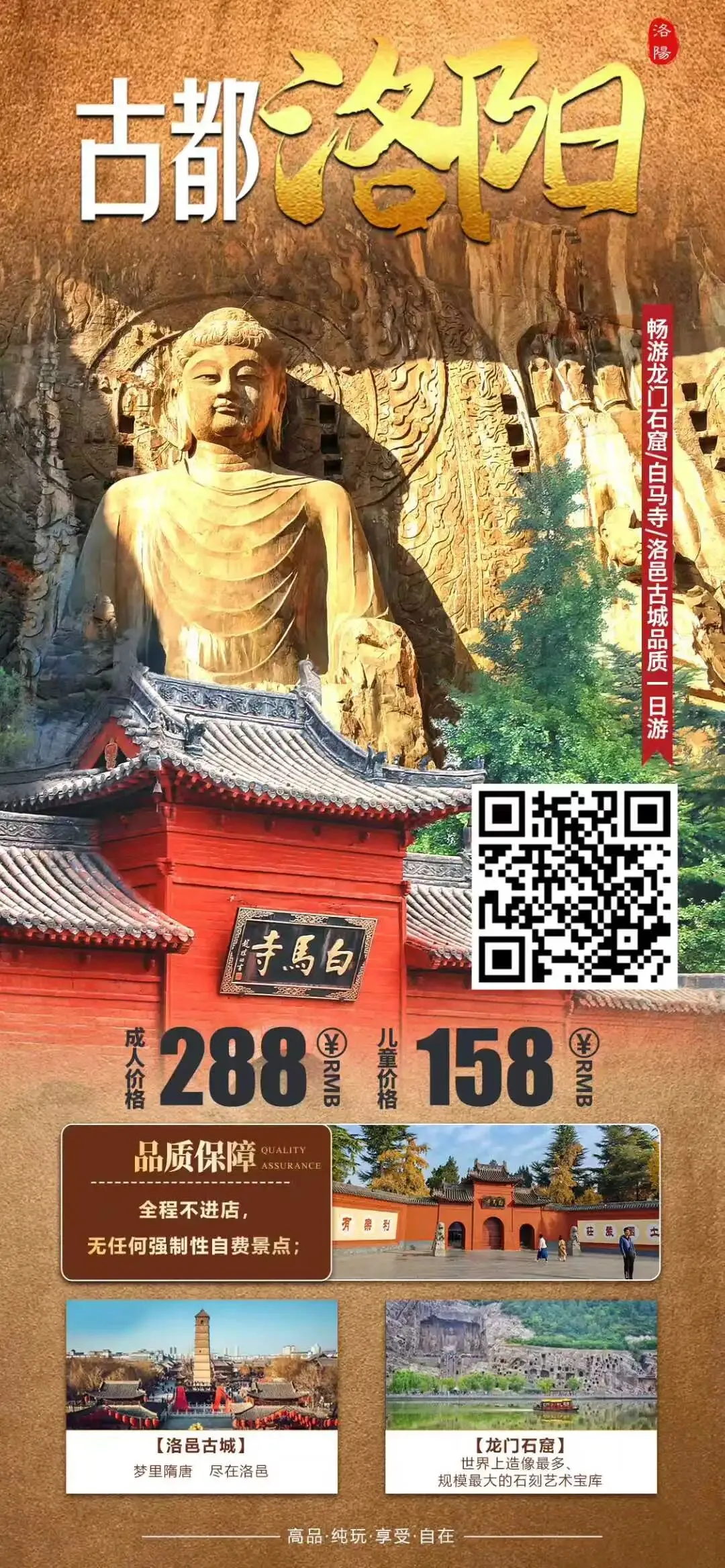 洛阳龙门石窟+白马寺+洛邑古城一日游:288元