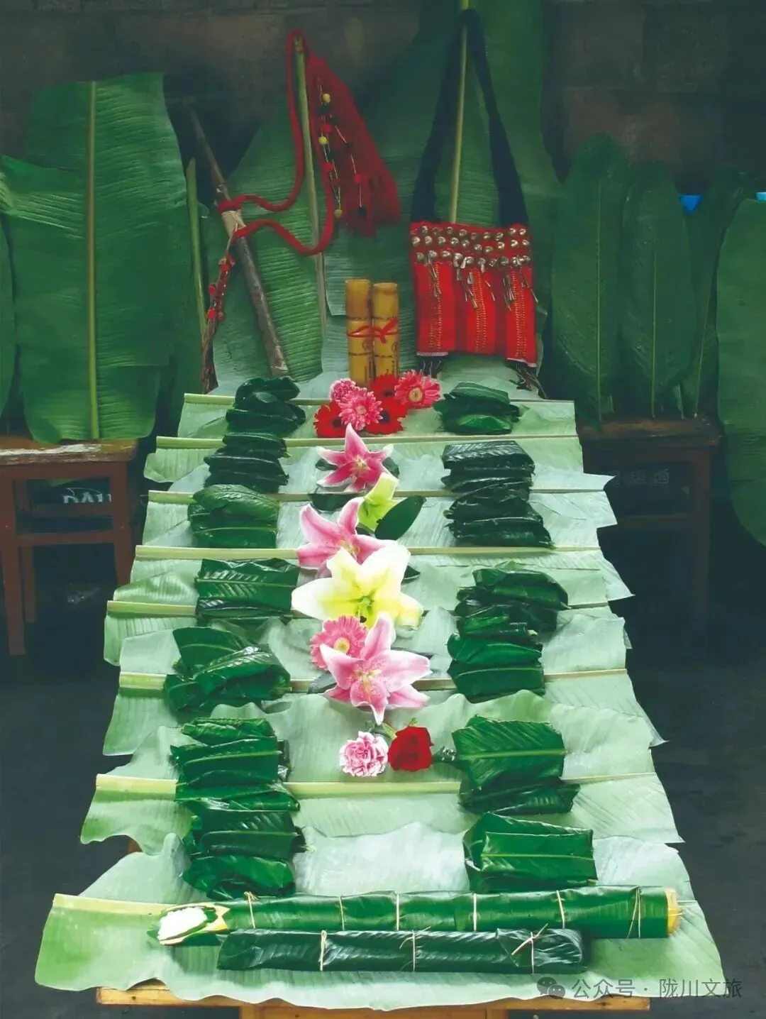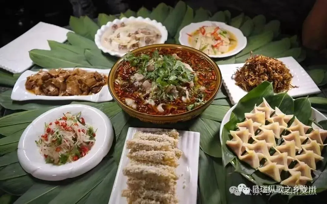 麻竹宴是陇川特有的宴席,是游客到陇川必品的一道美味佳肴。从竹的根菌,到竹笋、竹竿,再到竹的枝叶每一部分都得到充分利用,素雅醇香胞嫩,让人垂涏欲滴。主要菜品有:麻竹鸡、麻竹鱼、麻竹饺、麻竹粉蒸、红烧麻竹、凉拌麻竹、麻竹油笋等。