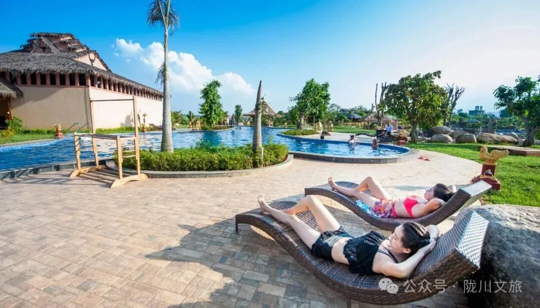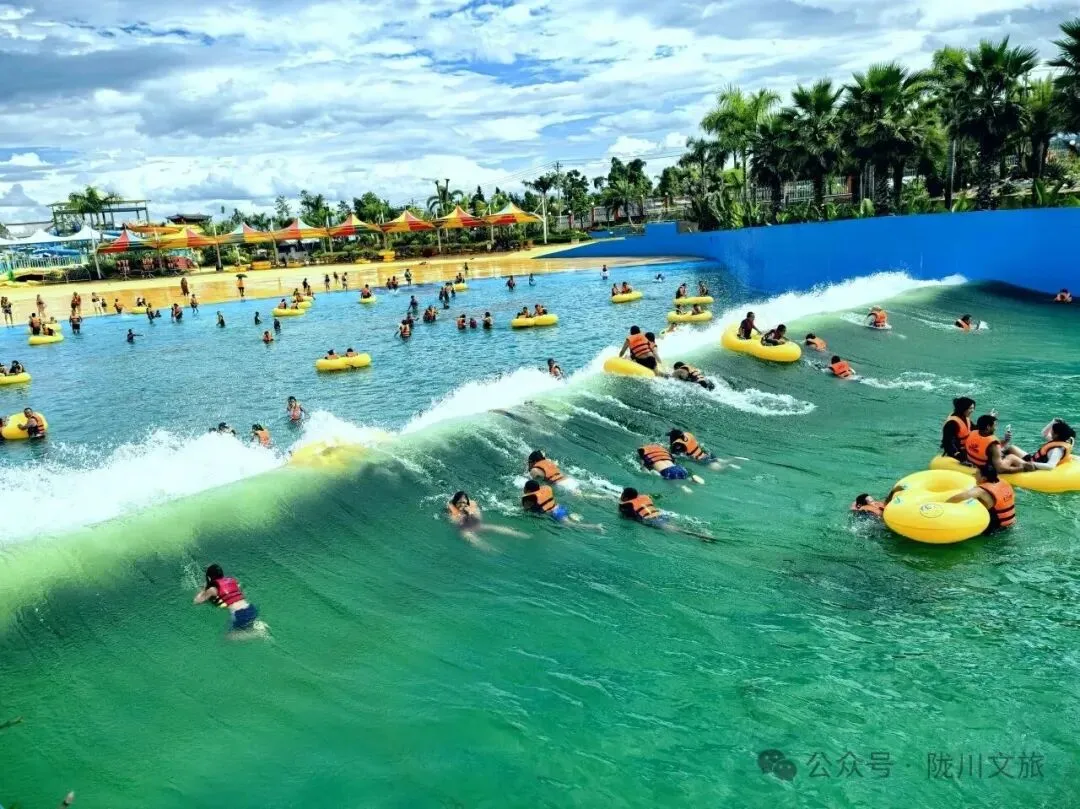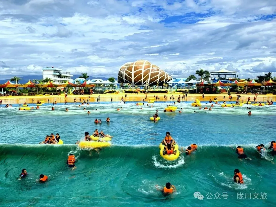 陇川欢乐水世界位于德宏州陇川县陇把镇龙安村,占地72亩,是一个集民族风情、边境水域体验为一体的水上乐园。园内有云南最大的海啸池,以及深渊滑梯、彩虹滑道、落差式环流河、吊篮滑梯、儿童水寨等大型水上娱乐项目,还有专业齐全的乐园设施。此外,园内还有海螺餐厅,游客可以在这里一边欣赏美景,一边享受美食。