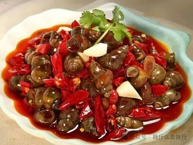 桂林田螺是很有地方特色的小吃,挑开螺的顶盖,撮着嘴用力喝进去,吃完田螺再喝汤,其味道又辣又鲜,特别开胃。螺蛳汤是煮田螺的精华,用它做出的螺蛳,鲜辣得会令人额上冒汗,过瘾极了。