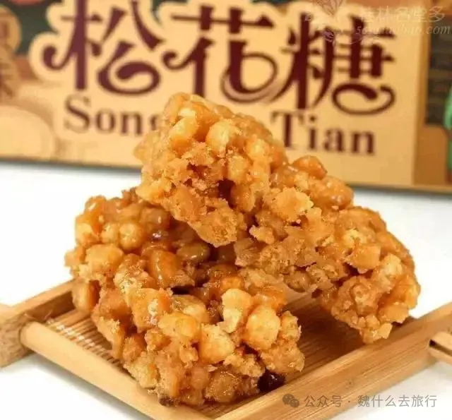 阳朔松花糖原名脆果糖,是阳朔当地最富特色的食品之一,是年节时令的常备糖果,及送礼馈赠亲友的好礼品。因其色泽黄亮,香甜松脆可口,是男女老少皆宜的小吃。