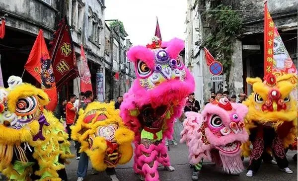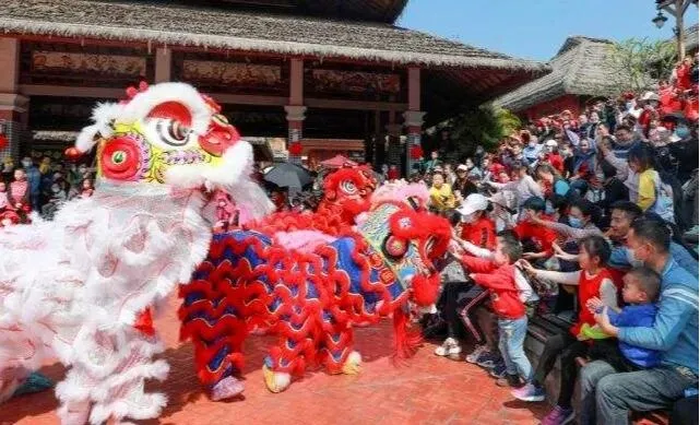 汉族春节极隆重热烈,初一到十五皆有相应的习俗和拜年活动。在广西,舞狮拜年之风极盛。舞狮走街串寨拜年,户主以烟糖茶果和钱币红包酬谢,有的主人将小孩的衣服、鞋帽、背带、玩具给“狮子”舔拜,以示交好运避邪恶。一只舞狮,串连起各族各户的情感。