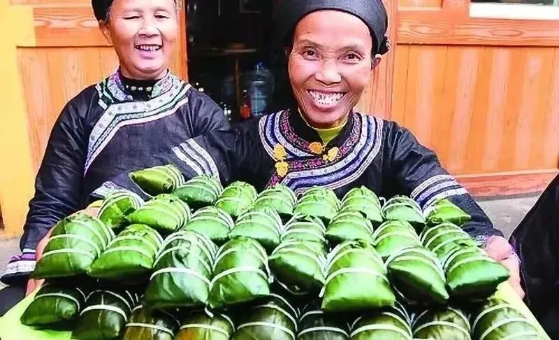 毛南族除夕以“百鸟”祭祖先。“百鸟”以昌蒲叶编成,形似鹧鸪、鹭鸶、山鸡等,内灌香糯,并伴豆类、芝麻。煮熟后串绑在一根甘蔗上,横挂于神台香火前祭祖,名为“槽鸟”。“槽鸟”一直供至正月十五日才取下当饭吃掉,称为“放鸟飞”。