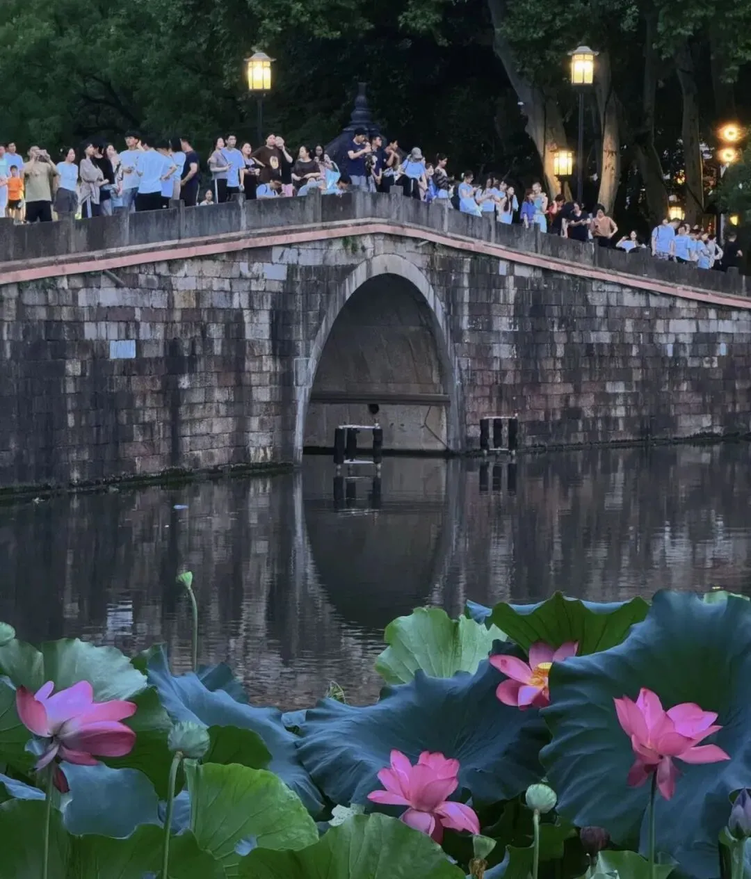 碧波浪万倾,如在画中行。湖水如明镜,月照更晶莹。”前面隐隐约约出现了高楼大厦,再看看这具有古典美的西湖,真是现代与古代相就合,