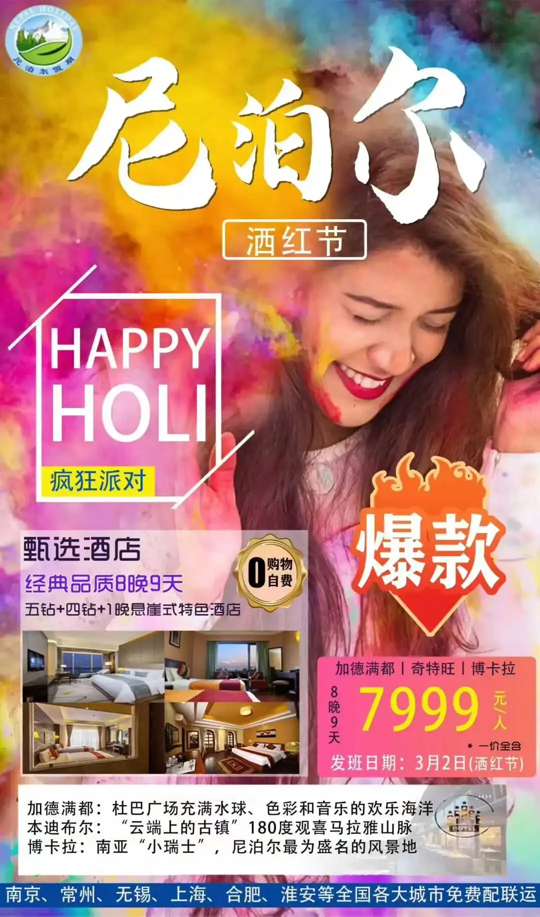 ✈️3月2日尼泊尔7999元一价全含,全景洒红节8晚9天(20人团,余位4-6)