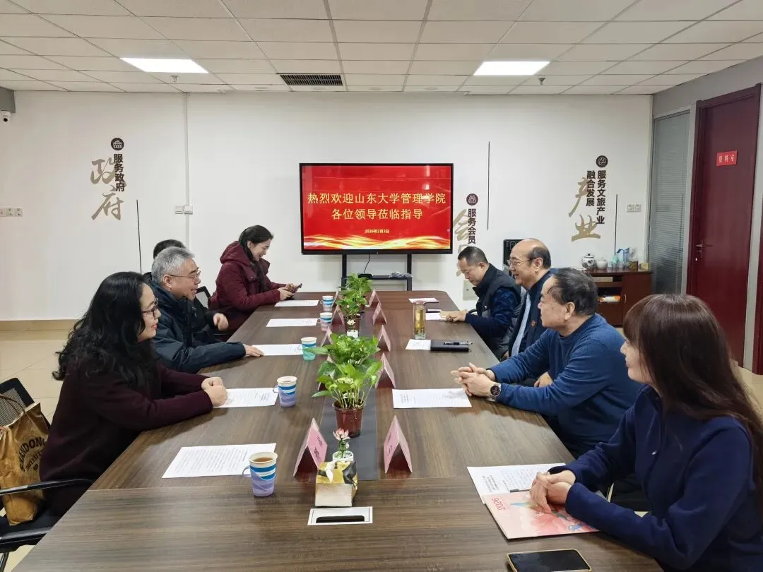 2月3日上午,山东大学管理学院院长丁荣贵、党委书记付岩志带队赴山东省旅游行业协会座谈交流。山东省旅游行业协会党支部书记、执行会长,山东大学旅游产业研究院院长王德刚主持座谈,省旅游行业协会副会长兼秘书长吴凯,管理学院副院长黄潇婷、文化与旅游学系教工党支部书记孙平及协会秘书处参会。