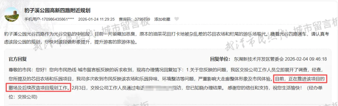 针对市民反映的问题,东湖高新区相关部门已明确回应: