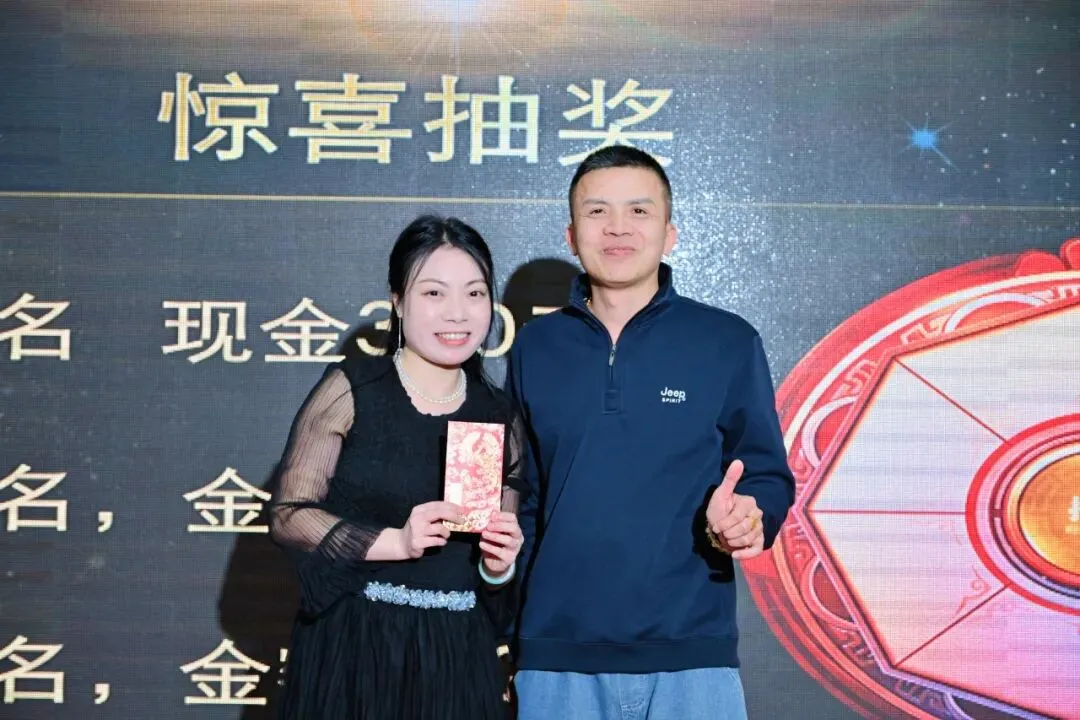 晚宴期间的抽奖环节,更是将现场氛围推向一个又一个高潮!多重奖项轮番上阵,惊喜不停、好运不断,每一份奖品都承载着公司的关怀与祝福。