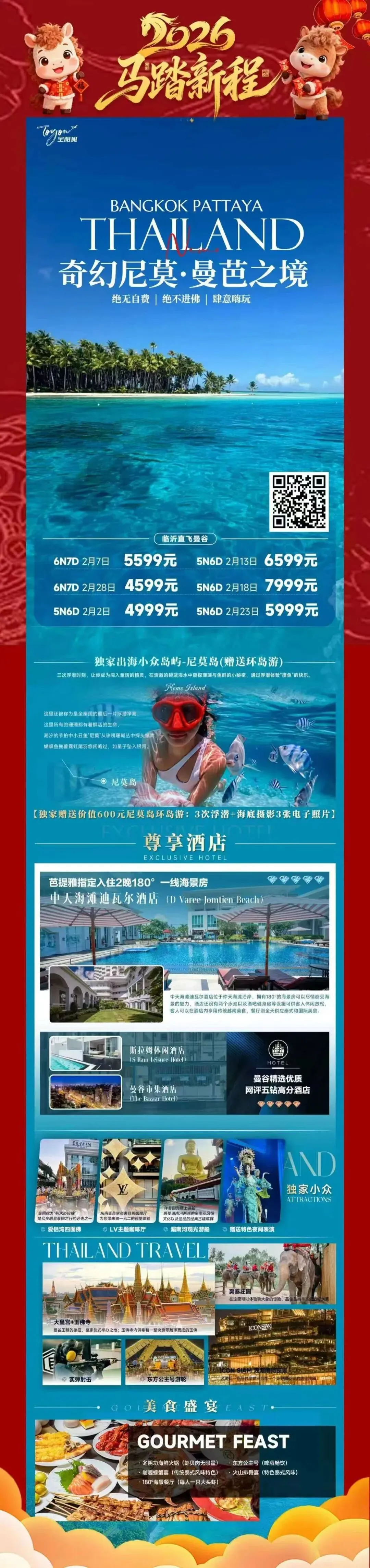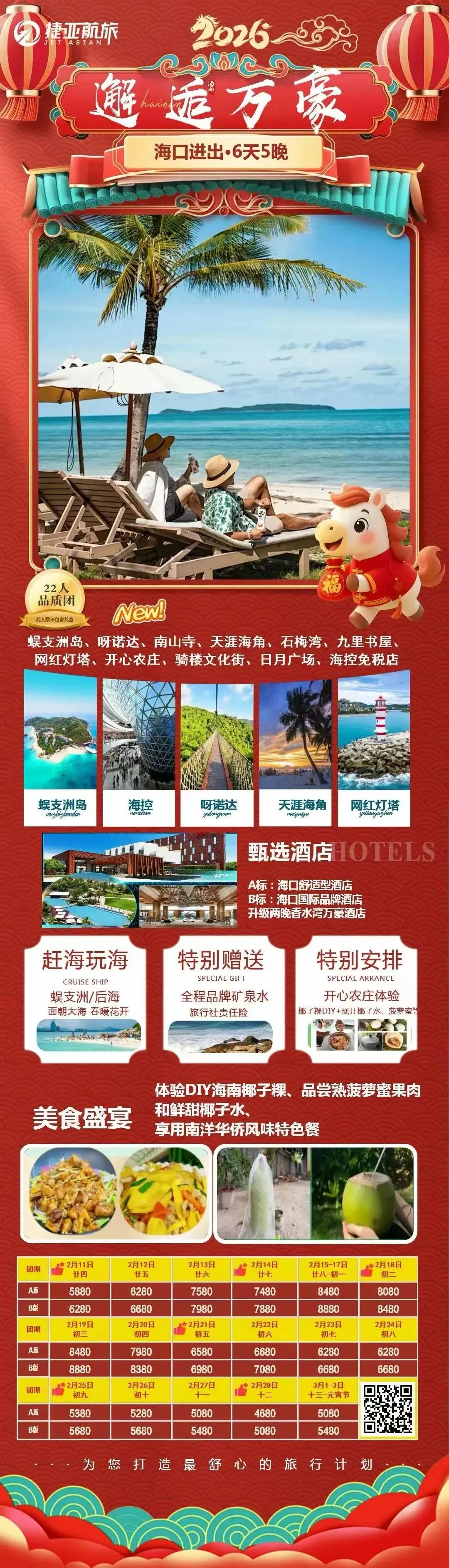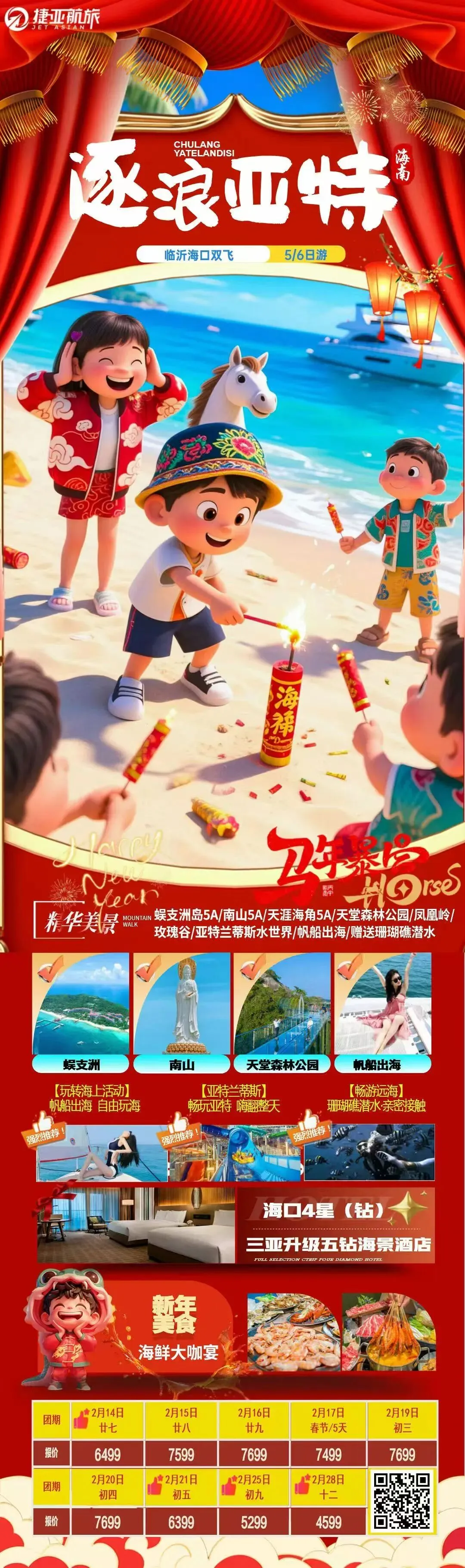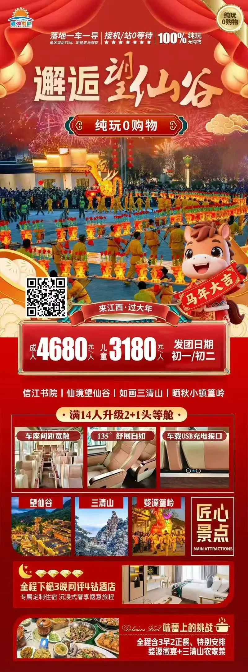 奔赴山海,赴马年新春之约。山水间辞旧岁,旅途中启新程。春节不宅家,把日子过成诗。马不停蹄,去见山河与热爱。烟火赴人间,旅途赴山海。马年第一趟旅行,解锁新年好彩头。辞旧迎新,出走过年。一半烟火人间,一半山川湖海,马年顺遂。