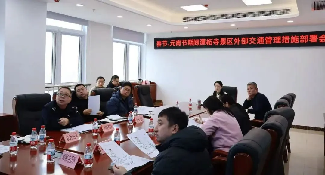 会议分两个阶段有序推进。第一阶段潭戒景区负责人详细汇报了春节、元宵节整体安保方案,并专项汇报了潭柘寺景区除夕夜间活动安保方案。第二阶段重点部署潭柘寺景区外部交通管理工作。交通管理支队针对双节期间景区外部交通重点时段、重点路段交通管控、车流疏导路线、人员配置等关键内容作出具体部署。各相关单位负责人结合自身工作职责,就如何进一步加强景区及周边安全保障、交通秩序、应急管理等工作进行了深入交流,并针对提出意见和建议进行研究讨论。