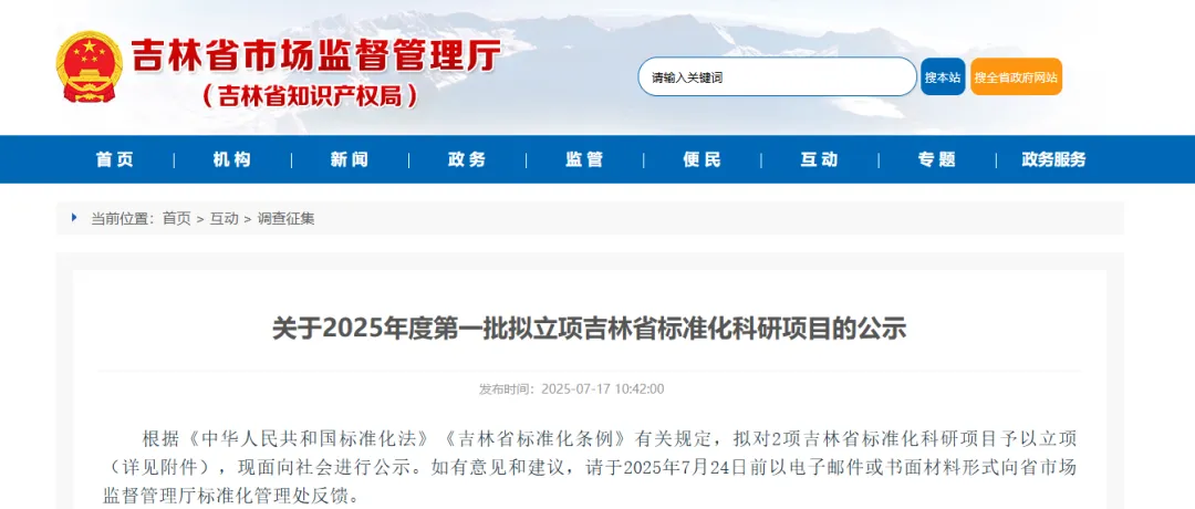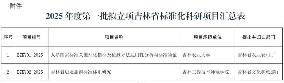 立项吉林省标准化科研项目